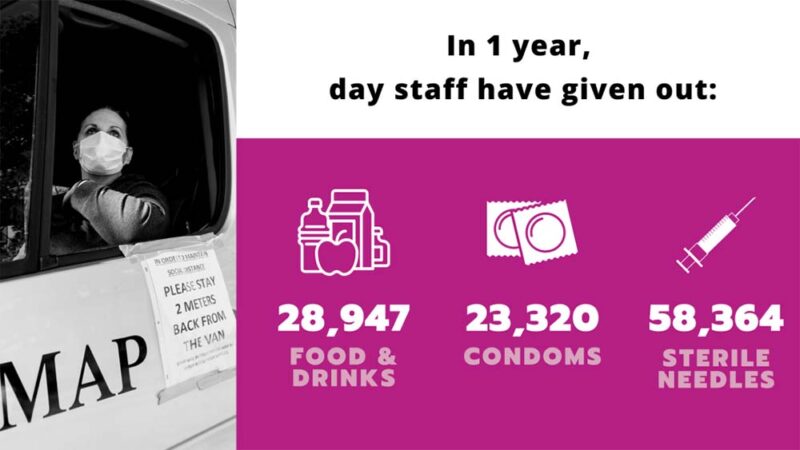 It’s been one year since the MAP Van day shift began operating in response to an increased demand for our trauma-informed and harm reduction supports and services.